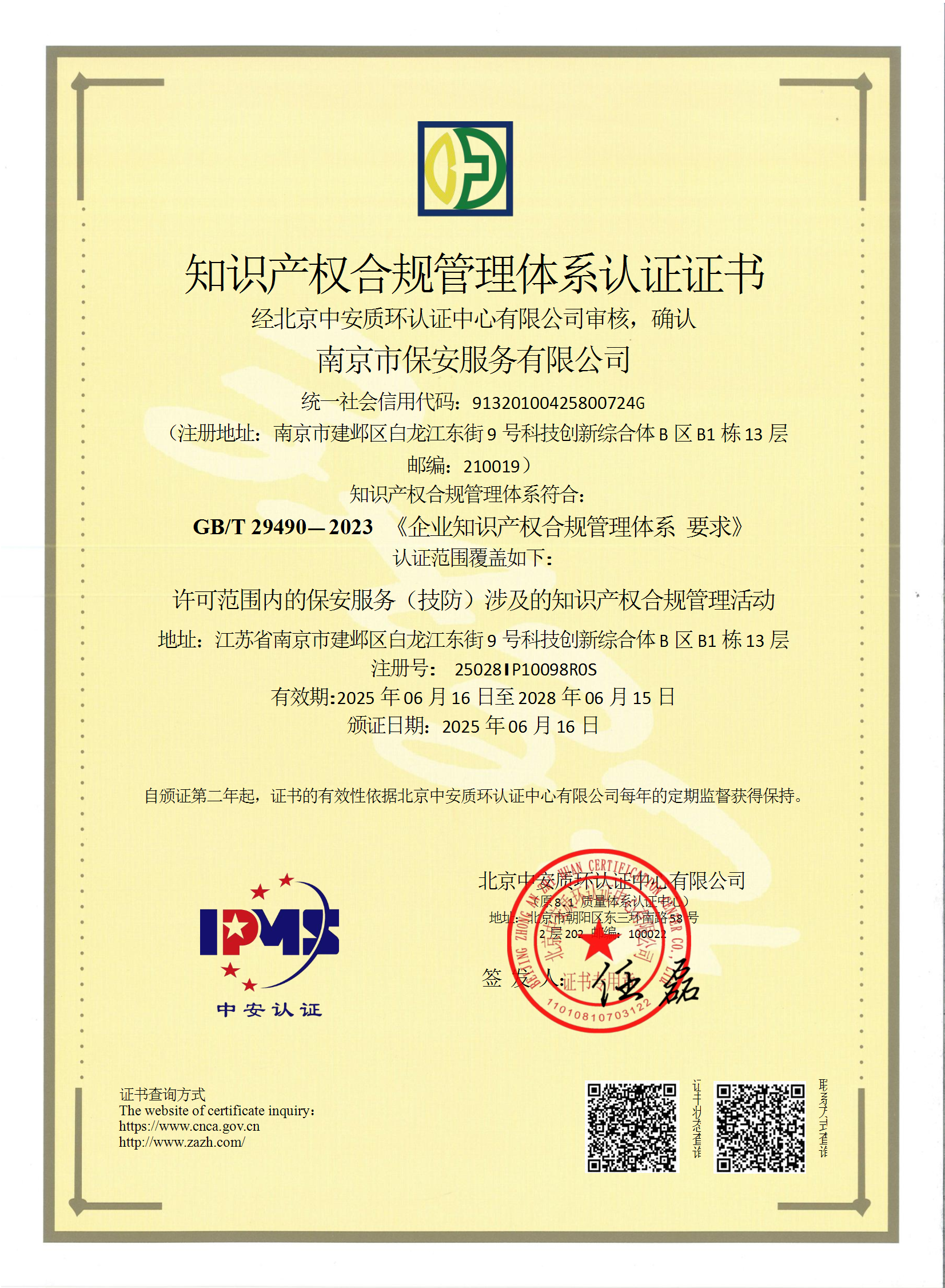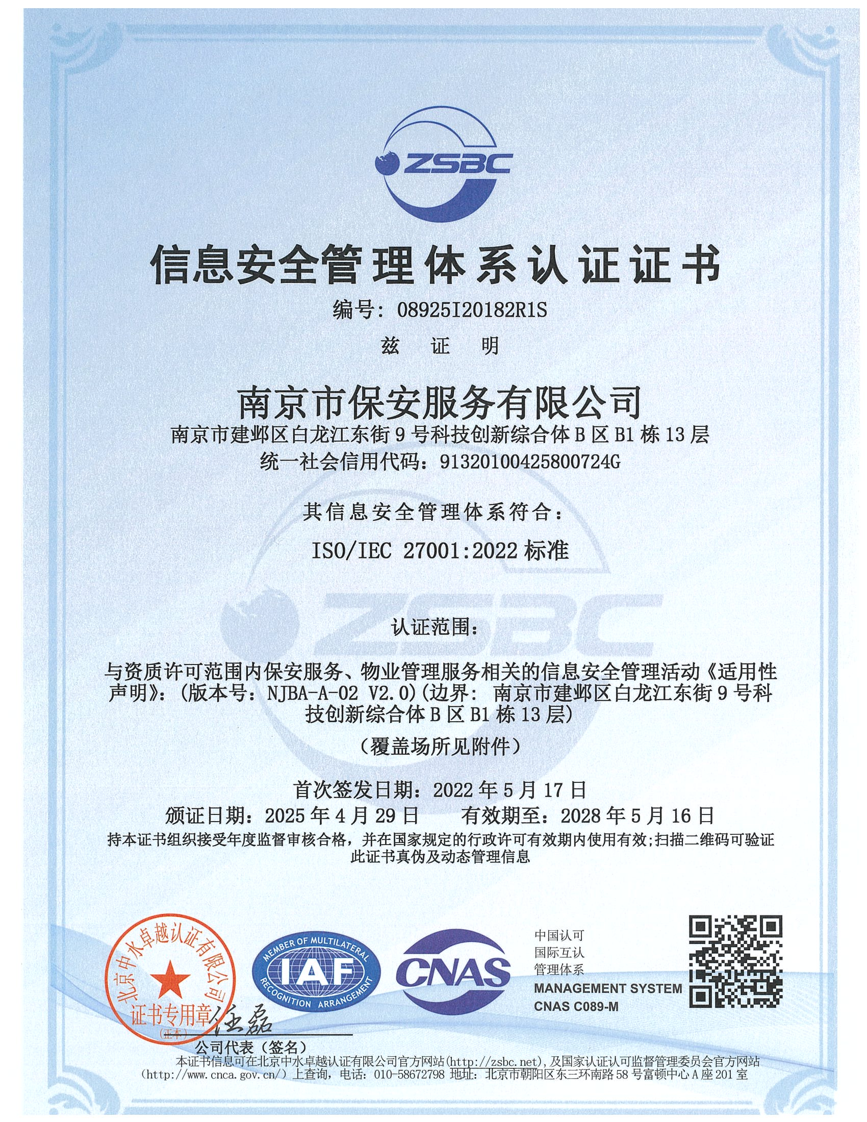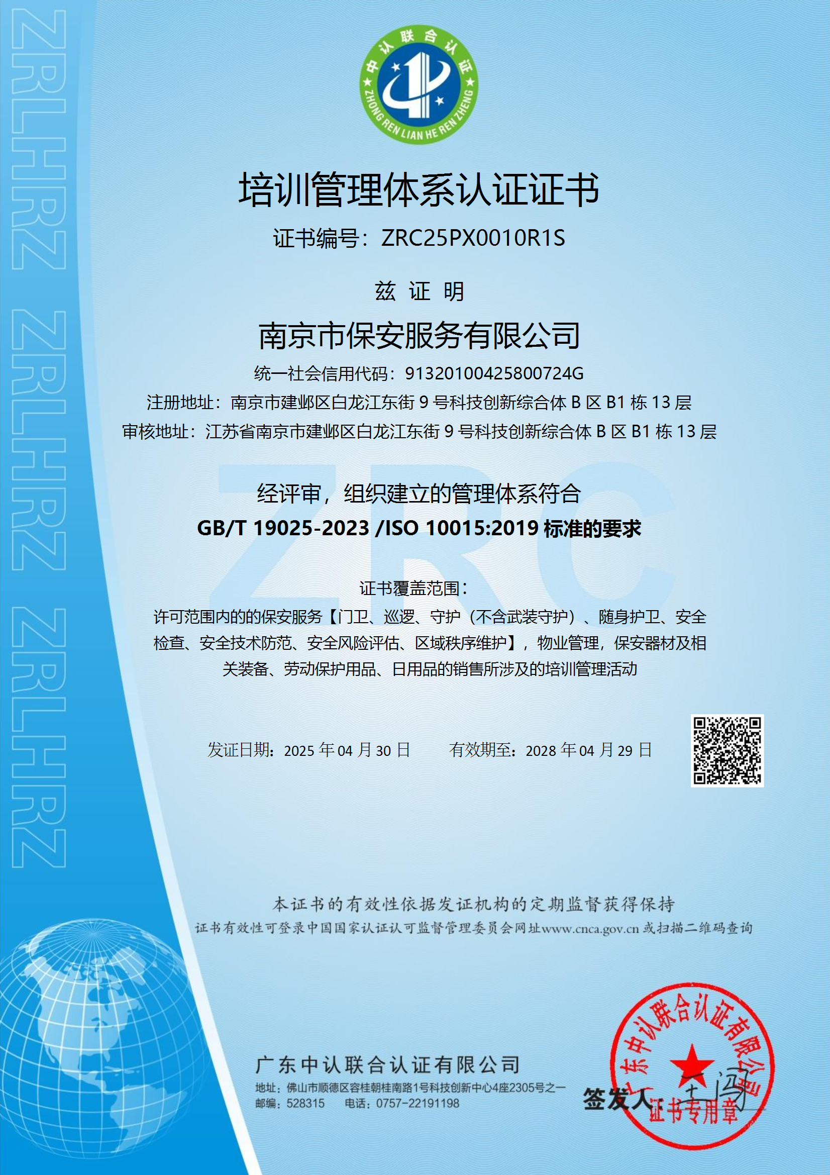 祝賀:南京市保安服務(wù)總公司通過企業(yè)誠信管理體系認證和企業(yè)社會責(zé)任管理體系認證[07-16]